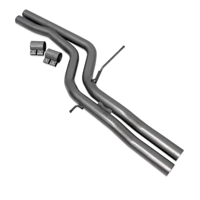No welding required! This is a true bolt-in exhaust upgrade that eliminates the quiet factory resonator for a deeper and more aggressive exhaust note, and the incorporated X-Pipe works to balance exhaust pulses from each side of the motor resulting in smoother exhaust flow.