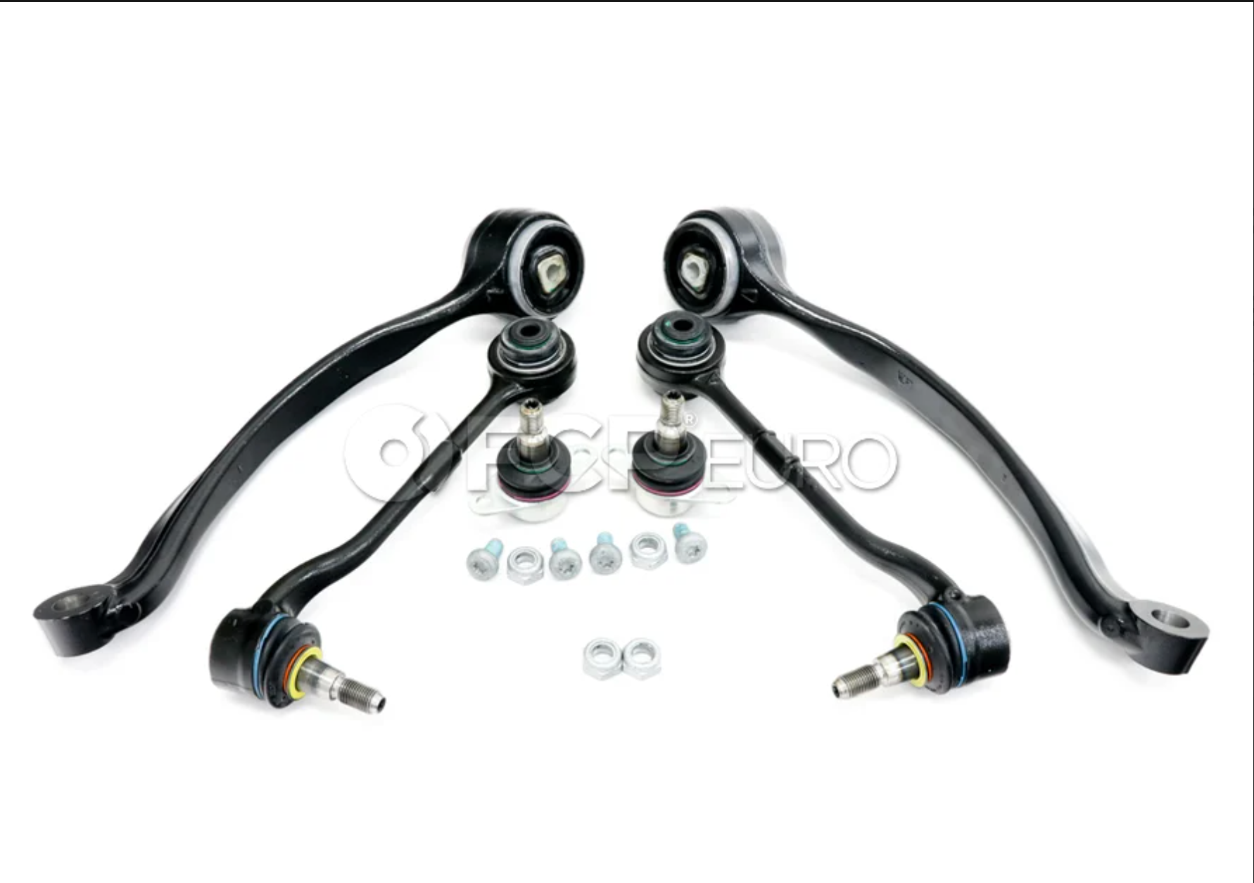 This front control arm kit assembled in house by FCP has been designed to address all common wear items in the front end of the all wheel drive E9X front suspension. The included components from Lemforder are the same components that would have been installed on the vehicle from the factory.